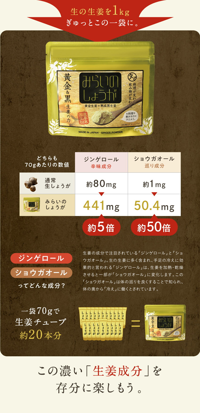 【70gあたり】 ジンゲロール:441mg/ショウガオール:50.4mg